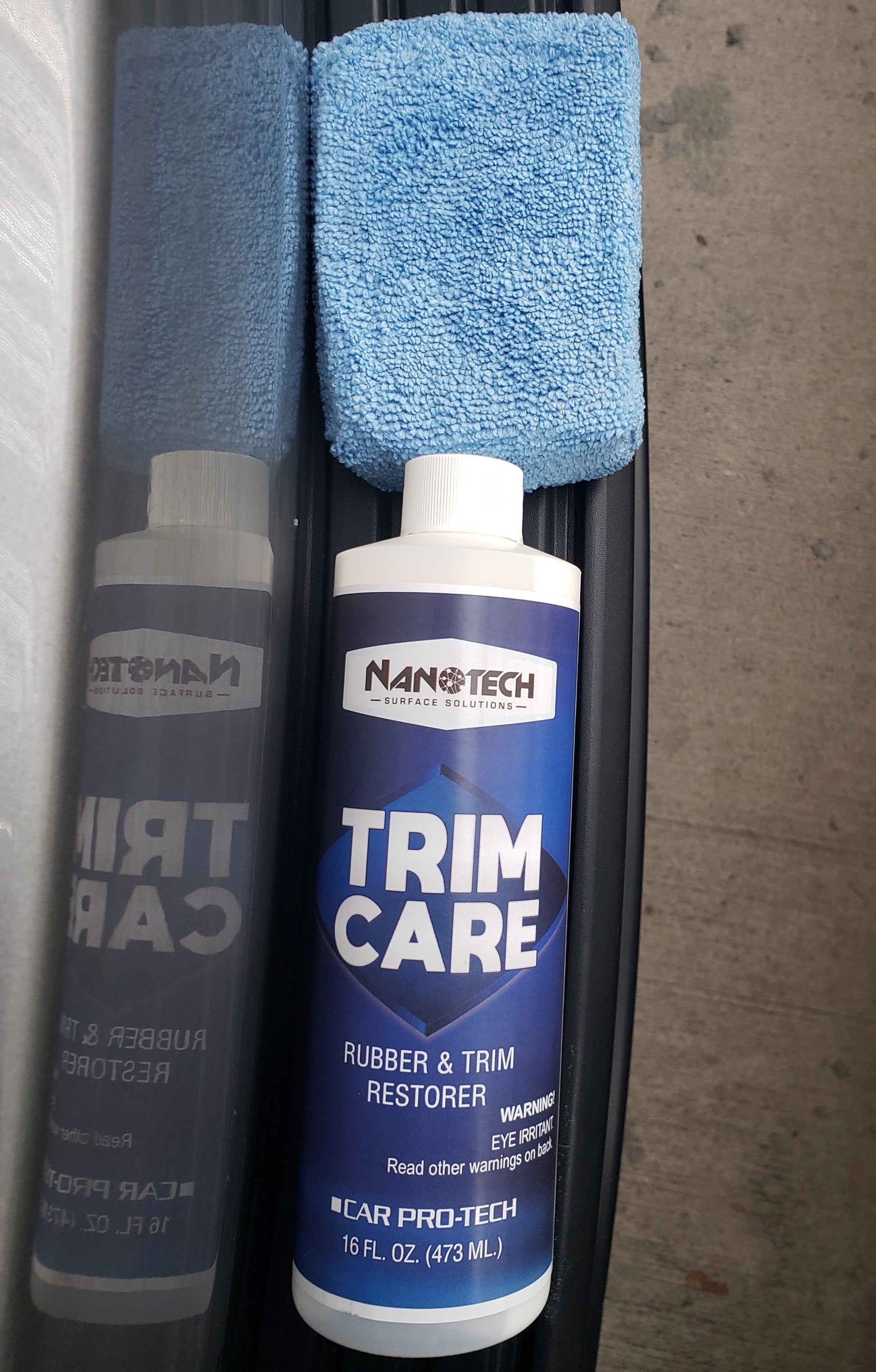 Trim Care es una solución diseñada específicamente para restaurar y proteger superficies de guarniciones y caucho. Trim Care restaura el color original del sustrato mientras lo sella para prevenir un deterioro adicional, manchas y acumulación de suciedad/químicos.